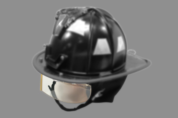 Nylon Bourke is protective shield on a firefighter helmet.